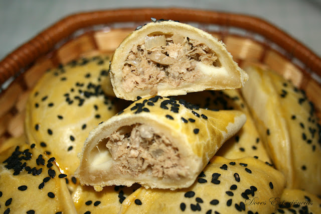 Mistura-se o preparado anterior na massa bem como os restantes ingredientes.